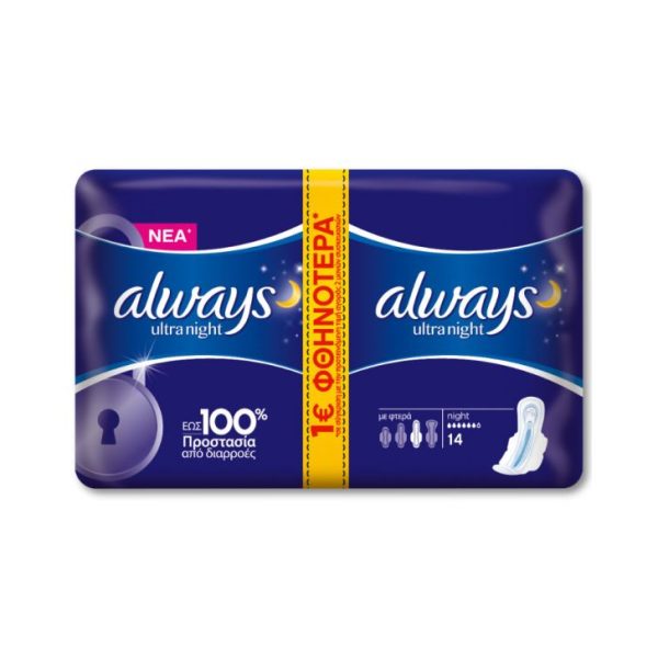 ALWAYS ΣΕΡΒΙΕΤΕΣ ULTRA NIGHT PLUS DUO (ΠΚ-14ΤΕΜ)